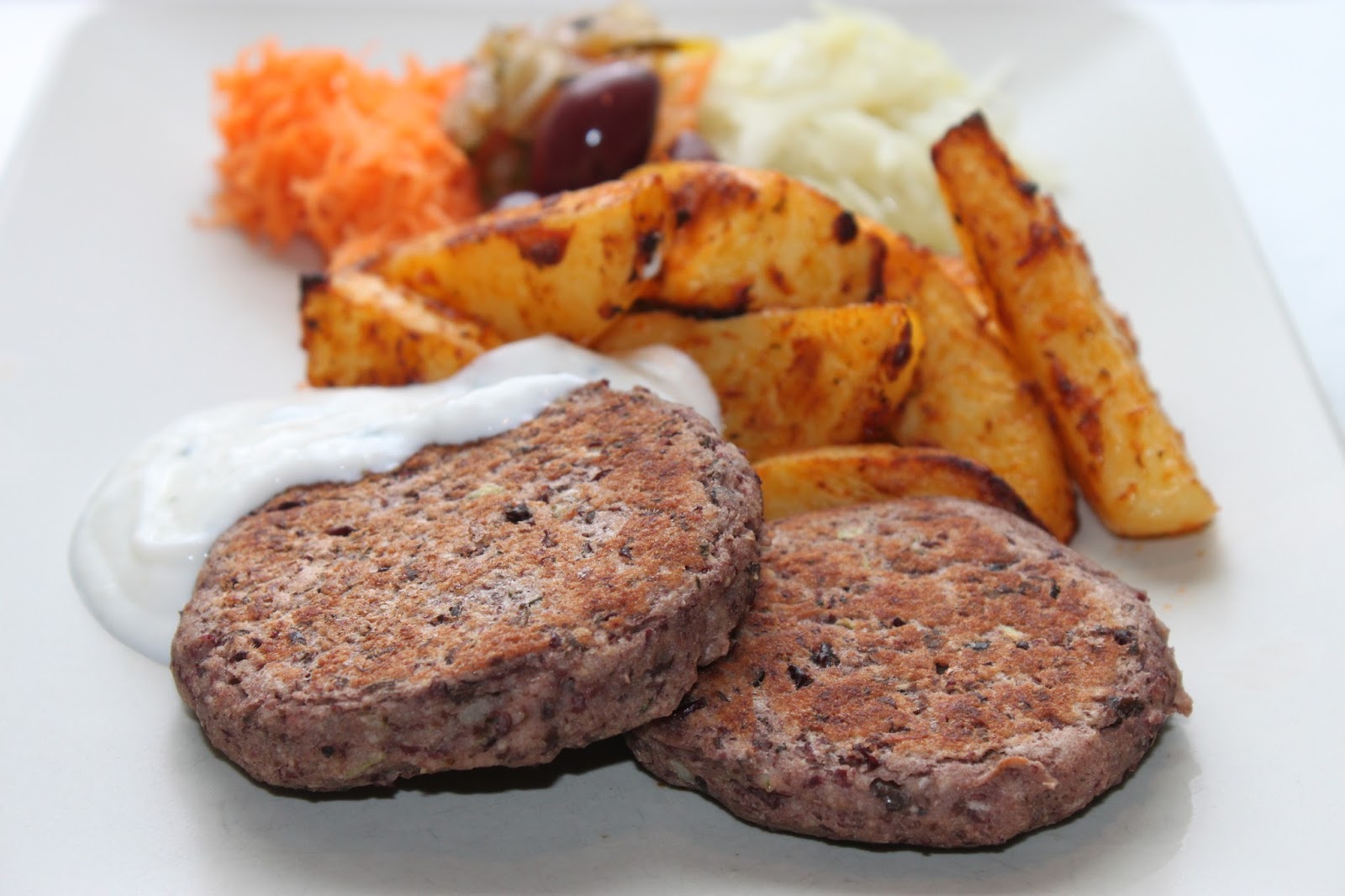 Det är alltid lite vanskligt att testa att göra vegetariska biffar eftersom de ibland kan vara lite svårhanterliga. Jag har ett favoritrecept som jag oftast använder, men ibland kan det vara kul att testa något nytt. Dessa kidneybönsbiffar är en mix av mitt gamla vanliga recept på bönbiffar och ett recept som jag hittade på tasteline (se här). Biffarna smakade förträffligt och höll ihop jättebra vid stekning. Vi serverade de goda biffarna med ugnsstekt pestopotatis, grönsaker och en kall sås med parmesan, citron och basilika (se här). Det var mycket smarrigt 😋.